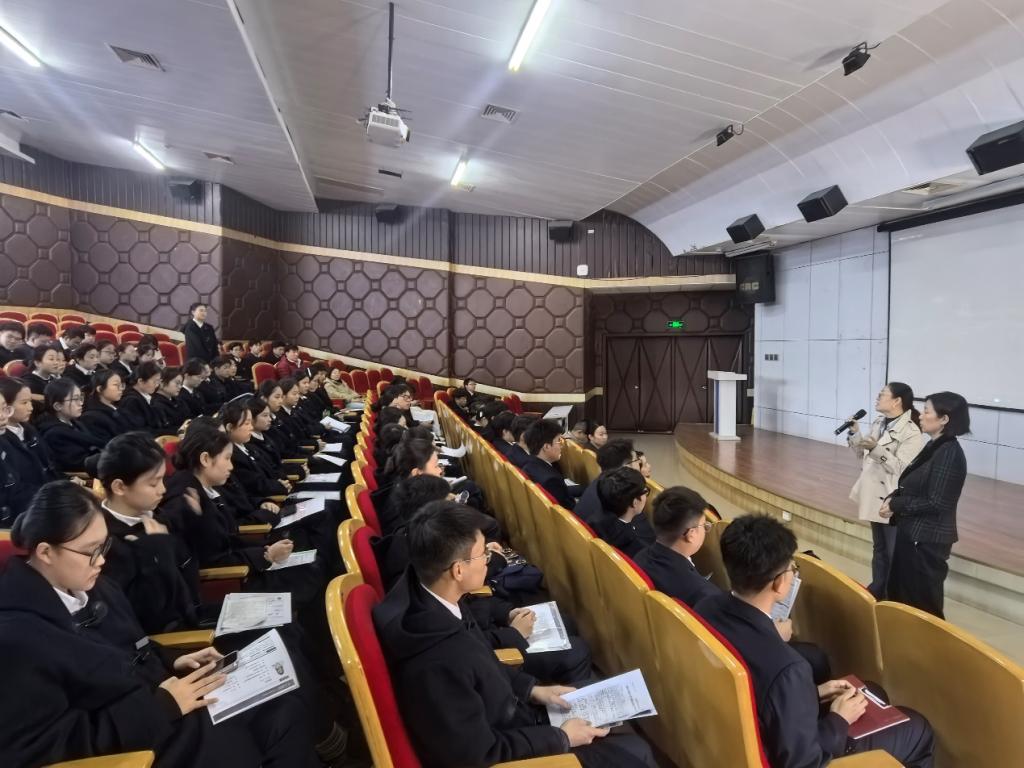 本次选拔活动于2025年11月18日下午在学院国交报告厅举行。选拔伊始,杭州萧山国际机场人力资源部陈荣为在场学子带来了详实的企业宣讲。通过播放宣传片、现场讲解与互动答疑等多种形式,全面展示了萧山国际机场的发展成就、企业文化以及安检护卫部的重要职能与职业发展通道,使同学们对未来的工作岗位有了更直观、深刻的认识,激发了投身民航安检事业的热情与决心。